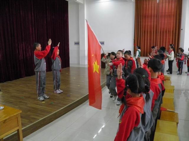 首先,我们举行了队仪式,队员们精神饱满,落落大方,动作规范整齐。