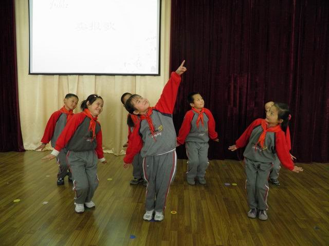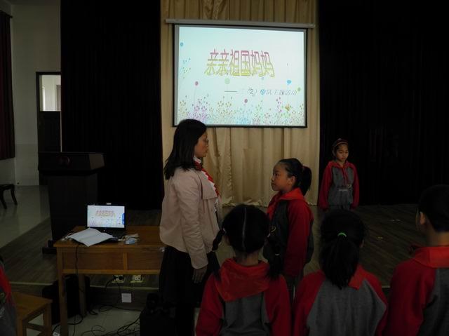 在清脆如黄莺出谷的独唱《我的好妈妈》的歌声中,活动正式开始了。4个小组分别汇报了“国歌 国旗”、“灿烂的文化”、“历史的长河”、“幸福的生活”4个板块。整个活动精彩纷呈,队员们参与热情高涨,表演十分投入。有的生动讲述了国歌国旗的相关知识,有的表演了精彩的歌伴舞《红星闪闪》、《祖国祖国我们爱你》,有的深情诗朗诵诗歌《东方雄鸡》,有的打起快板《了不起》,有的当起了“知识小博士”,来了个“祖国妈妈知多少知识竞答”,还有的表演了小品《卖报歌》,以各种形式表达对祖国妈妈的热爱和崇敬之情。在全体队员庄重而响亮的宣誓声中,活动圆满结束了。