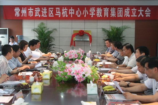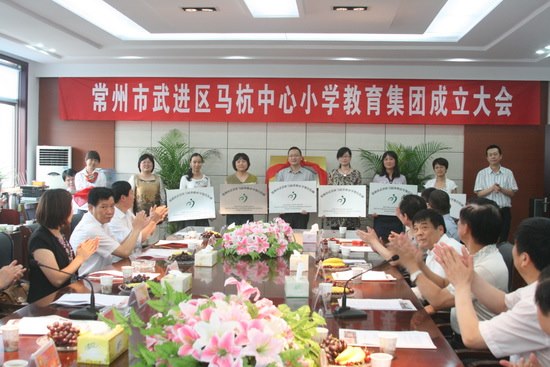 晴日暖风生麦气,绿阴幽草胜花时。2011年6月17日上午,武进区马杭中心小学教育集团成立了!武进区教育局副局长顾树民先生、湖塘镇副镇长朱佳莉女士、武进区高新北区管理处副主任张念先生、武进区教育局办公室主任贾小南先生、武进区教育局发展规划科副科长潘一沁女士、遥观镇文广教体科科长杨国民先生、马杭街道办副主任徐伟文先生应邀参加了成立大会。同时,出席本次活动的嘉宾还有马杭小学董事会及南田教育基金会的各位领导,集团各成员单位的领导、教师代表。
