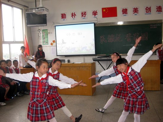 同学们的节目丰富多彩,鲜明的幻灯片展示,特色的民族舞蹈,有趣的互动游戏,嘹亮的民族歌曲……令嘉宾们大开眼界,并活跃了队员们的心声。