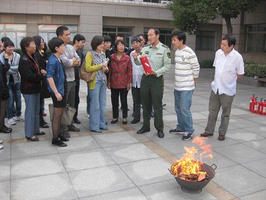 武进特勤中心江拥兵指导员从消防队员的基本职责、火灾基础常识、火灾预防、初起火灾的扑救、灭火器材的使用、火场逃生等消防基本常识对全体义务消防员培训。随后,又带领大家在操场进行实战演练——在空地上放置了油盆模拟火灾,义务队员演示了灭火器的使用方法,并使用干粉灭火器扑救火灾。