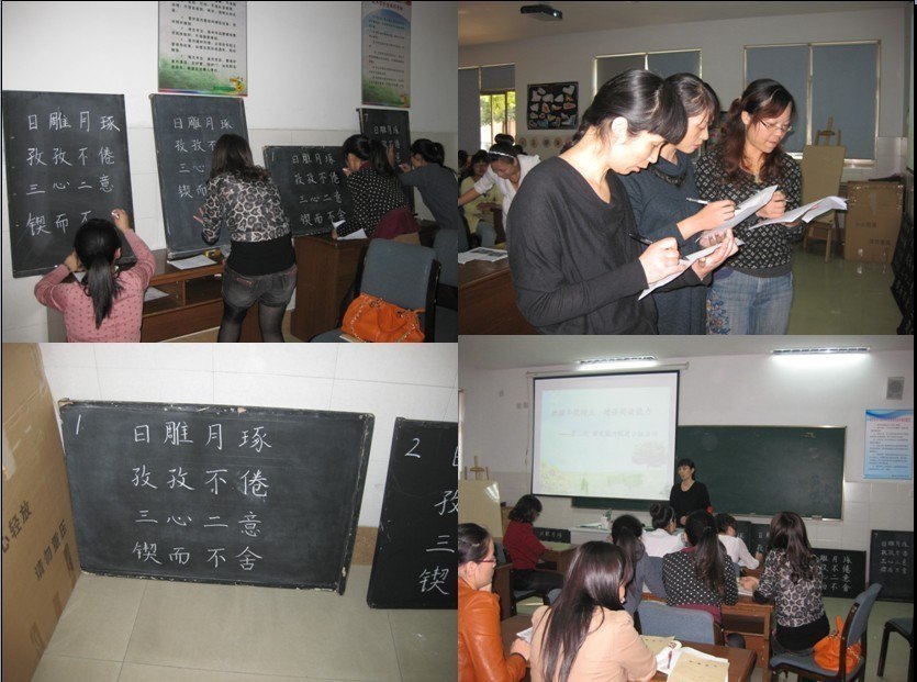 语文能力促进小组成员进行了现场粉笔字展示。评委老师现场打分。蒋惠芬老师为我们作出了精彩的点评、指导。她们的粉笔字或娟秀,或苍劲,真让人赏心悦目。这一方展示的舞台,为我们第二批能力促进小组成员吹响了专业发展的号角。激励着能力促进小组成员扬长避短,努力练习,争取获得更大的进步。