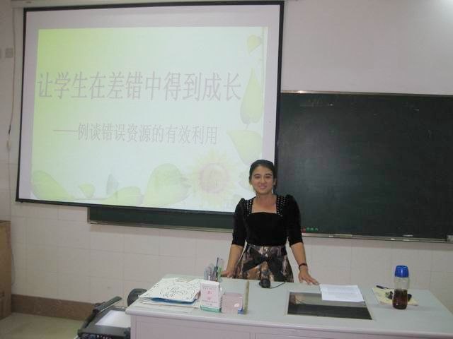 白舜华老师作了一个关于《让学生在差错中得到成长——例谈错误资源的有效利用》的精彩讲座。白老师这一讲座和她的课堂教学一样,给人一种形象生动、充满激情的感觉。首先,白老师明确的点出了目前数学课堂教学中存在的三种对待错误的典型现象,然后结合了自身多年的课堂教学中积累下来的典型例题,谈了在教学中如何对待在课堂中出现的错误资源。她的讲座理论联系实际,生动具体,给大家以很好的启迪。
