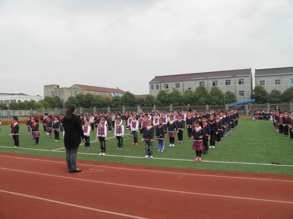 每次更换新的广播操对于全校师生来说都是一项不简单的任务。体育老师们暑假就开始培训,开学之后全体班主任、副班主任抓紧空余时间争分夺秒地学习。体育课,大课间,两节课后,一个个班级,一群群孩子,跟着老师一招一式学做新操。高年级的孩子学起来比较顺利,最艰难的就是一二年级的小朋友。不论老师们的示范做得多么到位,等到孩子们表现出来总是五花八门、千奇百怪。老师们的嗓子哑了,小朋友们哭鼻子了……但是新的广播操,却在一天比一天整齐,一天比一天规范。
