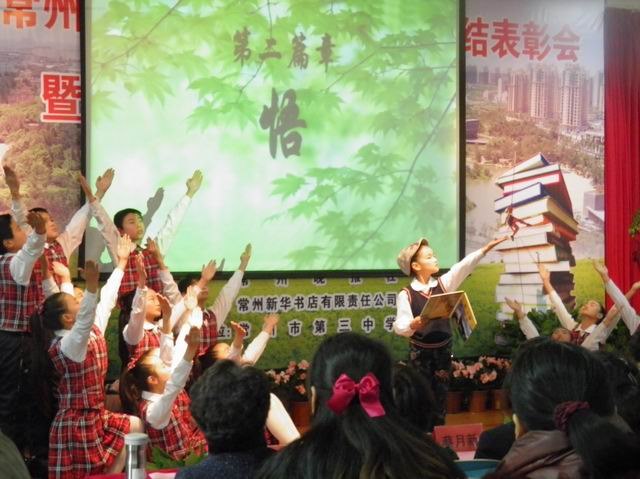 会上,常州市教育局丁伟明局长说,书是伴侣,书是老师,书是朋友,书是文化……一个崇尚读书的民族一定是一个优秀的民族,一个崇尚读书的社会一定是一个充满希望的社会,而一个崇尚读书的校园一定是一个健康而充满生机的校园。
