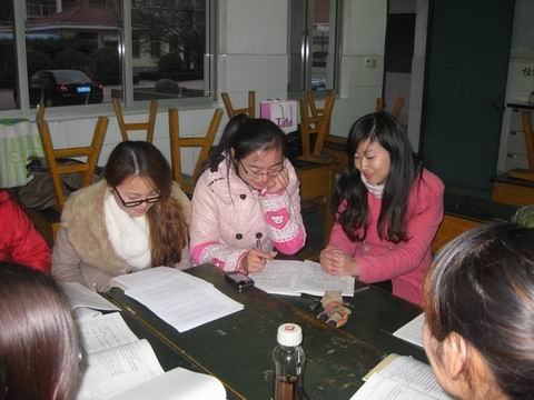 在活动中,我们首先查看了3位新教师的备课情况。3位年轻教师虽然是第一次踏上教学岗位,但从他们认真的备课中,我们也看出了他们的踏实上进。教研组各成员还有针对性地对新教师备课提出了一些意见和建议。