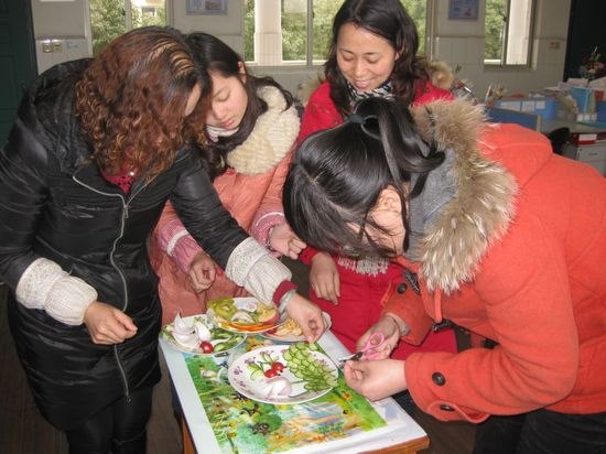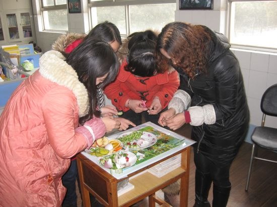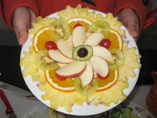 首先,我们开展了秀厨艺——水果拼盘活动。大家准备了各种各样的水果。比赛在带着果香、热情、笑声以及欢乐的气氛下进行。老师们充分展示自己的动手能力,发挥自己的想象力和创造力,利用平时那些普普通通的水果,设计出了一个个令人惊奇的画面,让我们不仅享受到了水果带给我们的清新感觉,更让我们在视觉上享受了一场盛宴。