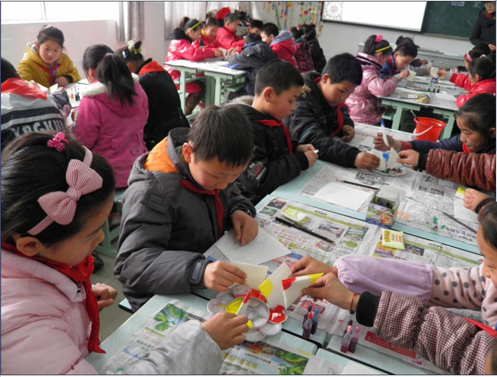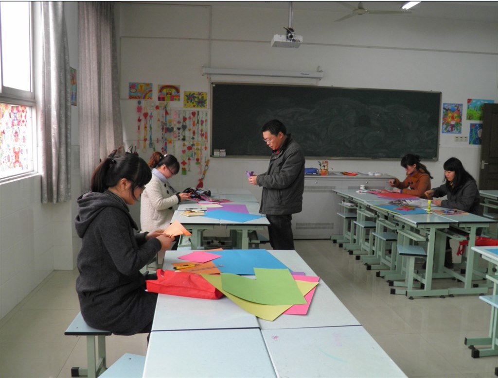 16日下午,城东小学综合楼美术室春意盎然,马景老师和金佳竹老师向美术专兼职老师们展示了两堂充满着春天色彩的课。完后,美术专职教师还当场进行了纸的立体造型制作。