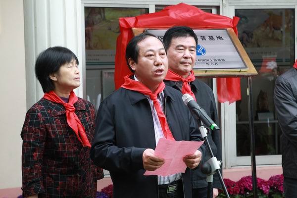 首先,由杨筱艳校长致欢迎词,对专家组的到来表示热烈的欢迎和衷心的感谢;接着,省国土资源厅地质环境处刘震平处长宣读基地的命名文件,省国土资源厅科技处钱智敏处长、武进高新区北区李文平书记为国土资源科普基地揭牌。随后,钱智敏处长、朱兴贤副院长、张世善副局长发表了热情洋溢的讲话,对城东小学成为国土资源科普基地表示热烈的祝贺,指出国土资源科普基地的命名,是起点,是机遇,是激励,是挑战,必将引领城东小学走上科普教育的新台阶,同时也希望城东小学地学科普基地以此为新的起点,再接再厉,不断扩展科普宣传渠道,丰富科普活动内容,开拓科普教育形式,引导人们珍惜地球资源,保护地球环境,为普及地学科普知识做出新的贡献。