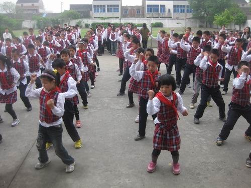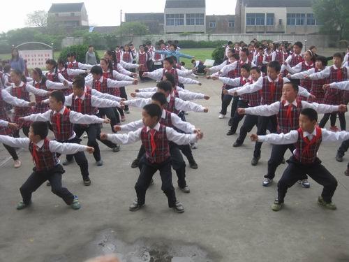 月的风儿轻轻的、暖暖的,同学们的心情跳跃的、兴奋的。425中午,杨区小学全体师生集中在操场上,举行了小学生武术操比赛。