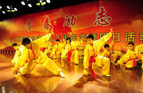 下午2点,随着鸣凰中心幼儿园充满青春活力的健美操登台表演,本次活动正式拉开帷幕。湖塘镇团委书记张巍代表镇团委为本次活动致辞,他说,本次活动是全镇团员青年在喜迎中共共青团成立90周年到来之际而举行的一次盛会,是全镇团员青年政治生活中的一件大事、一件喜事,希望广大团员青年以此为契机,在各自的工作岗位上再接再厉,昂扬斗志,开拓创新,以先进为榜样,为湖塘镇共青团事业的发展做出更大更新的贡献。随后,湖塘实验中学等11所学校选送的节目悉数登场,其中湖塘中心小学的三人唱、马杭中心小学、湖塘中心幼儿园、金太阳幼儿园、新城阳光幼儿园、淹城初中、马杭初中、湖塘桥初中的舞蹈、湖塘实验中学的武术和独唱等节目都充分体现了青春的气息,现场不时响起阵阵掌声。