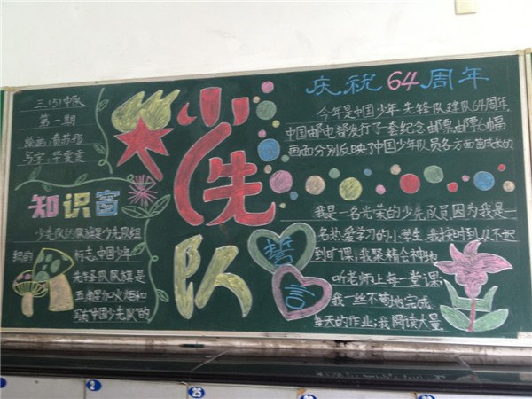 本期板报活动中,各班老师均能带领学生积极搜集资料,利用空闲时间进行创作,一幅幅鲜明生动板报展现在全校师生面前。纵观各班的黑板报,主题鲜明醒目,设计美观合理,编排富有创意,形式多种多样,内容丰富多彩,弘扬和培育了广大学生的爱国主义精神,进一步凝聚了班级文化建设,无声息地激发着队员们倍加珍惜今天的幸福生活,懂得刻苦学习。