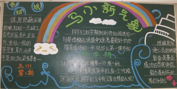 本期板报能围绕新学期新气象、关爱生命、勤俭节约等主题设计内容,渗透了勤俭节约、关爱生命等思想教育,让学生以崭新的姿态迎接新学期的到来。