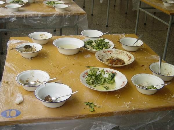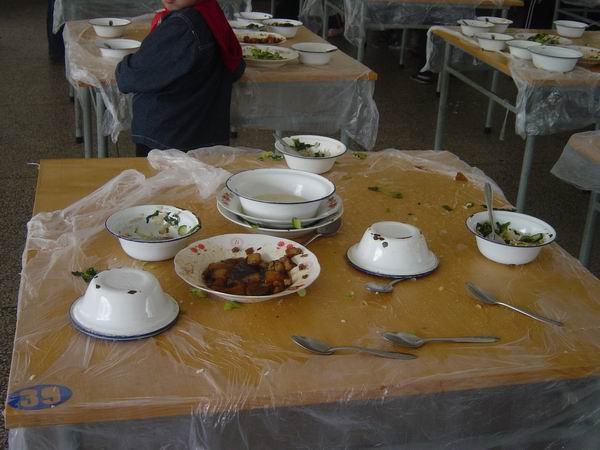 2005年4月18日中午11:40我们总务处对我校食堂文明用餐情况进行了第二次调查,与第一次调查相比,情况有了很大的好转。但是部分桌次的文明用餐情况没有好转,希望能引起班主任老师和用餐学生的注意。本周我们总务处还只是进行情况调查,给班主任老师和用餐学生一段时间进行自查自改,特别是混合桌次的用餐学生,希望各位班主任老师能多关心。下周我们总务处将进行正式开始检查,我们会把情况不好的班级和桌次及时在校园网上公布。检查的内容包括:进出食堂的队伍、用餐时的纪律、用餐后的桌面和地面等。检查后我们将评出文明用餐桌次和文明用餐班级。