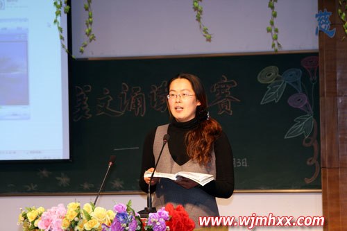 选手们以优美的语言为在场观众诵读了苏教版中脍炙人口的传世美文。经过激烈角逐,共有6名选手脱颖而出夺得比赛的一等奖,她们凭着自己对教材的深刻理解,真挚的情感,精湛的朗诵技艺,每篇课文都被老师们演绎得如诗如画,显示了较高的朗诵水平,深深地征服了每一位评委和在场的听众。