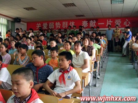 首先,马小的同学在特殊学校领导的带领下,参观了他们的校园,观看了他们精心准备的学校特色展板。接着,马小的同学来到特殊学校的各个班级,分别与特校孩子们进行交流,还赠送了特意准备的小礼物。短短的半个小时,他们却结下了浓浓的友谊。最后,两校的孩子们欢聚一堂,一起联欢:诗朗诵《明天的希望》声情并茂,给予孩子们生活的激情;表演唱《真情告白》让孩子们又一次感受到校园生活的充实;特殊学校的舞蹈《感恩的心》感化着孩子们的心灵;马小的小合唱《美丽的太阳花》、舞蹈《80块环游世界》和大合唱《感恩的心》赢得了一阵阵热烈的掌声……小游戏《劈劈啪啪过六一》在两校孩子的合作中把联谊活动推向高潮。伴随着一曲《爱的奉献》,马小的杨红霞校长把一份爱心款献给了特殊教育学校的同学。