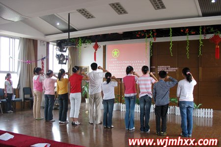 队旗缓缓离去了,同学们离开了曾相伴多年的少先先锋队组织,但是又一个先进的组织却早已向他们招手了,那就是——中国共产主义共青团。这个学期,在少先队员的迫切愿望下,有50名队员接受了系列的团知识教育,对中国共产主义青年团有了更深入的认识。在团组织的教育与培训下,有9名同学正式被批准成为共青团员。 在激昂的团歌声中,新团员入团仪式开始了。9名新团员胸前戴上了闪闪发光的团徽,面对鲜艳的团旗,举起右手庄严宣誓:“我志愿加入中国共产主义青年团,坚决拥护中国共产党的领导,遵守团的章程……为共产主义而奋斗。” 青春誓言、高昂雄浑,表达了同学们对共青团组织的无限向往和为团组织增光添彩的豪迈激情!