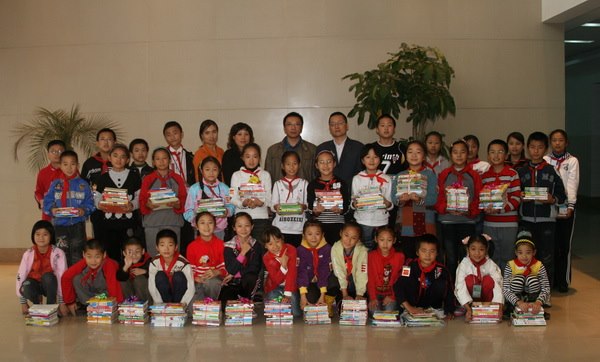 大会上,张校长畅谈了来校一个月来的收获和感受,对学校的办学理念、精致化管理、师生的良好素质给予了高度的评价,并由衷地感谢学校给予他的无限关怀和帮助。缪校长对张校长来校后的工作给予了褒奖,并转达了全校师生的深深祝福。大队长杨希代表全体队员向张校长介绍了大队部为远在异乡的新疆小朋友开展的“好书漂流促友谊”的手拉手活动:队员们拿出自己的最喜爱的一本书,并在书中珍藏了一张亲手做的彰显个性的书签,书签上写了自己的姓名、年龄、爱好等信息,并写了精彩的读书感言。他们希望新疆的小朋友能喜欢自己赠送的书,让一本本好书成为一根根寻找友谊的纽带,能和远方的小伙伴分享知识,让阵阵书香传播成长的快乐。“张校长,希望这些书能给新疆的小伙伴带来快乐!”“张校长,希望下次你带着新疆的小朋友来玩!”一句句真挚的话语让张校长感动不已,他激动地说:“我一定把你们的深情厚谊带回新疆,新疆各民族的小朋友一定会和你们手拉手成为好朋友,让好书把两地小朋友的心连在一起。”缪校长代表全体老师也向张校长赠送了一些适合老师阅读的书,希望马小的老师与托小的老师也能手拉手,成为共育祖国美丽花朵的互助伙伴。