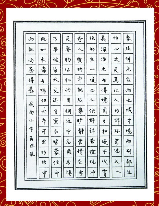 也许我们的老师不是书法的佼佼者,但我们依然龙飞凤舞地挥洒笔墨;也许我们的教师不是书法的挚爱者,但我们依然兴致盎然地展示我们的风采。此次活动,共收到教师硬笔书法 92 幅,软笔书法 93 幅。教师们的书法作品有的遒劲有力,如铁干虬枝;有的清新飘逸,如行云流水;有的端庄秀丽,如峻山险峰,可谓千变万化,各具情态。