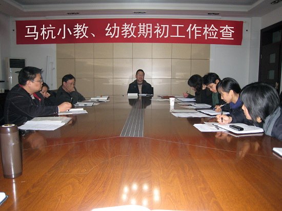 伴着新年的喜气与憧憬,踏着春天的脚步与希望,新的一个学期来到了。为了全面贯彻落实《江苏省中小学管理规范》,促进学校各项工作顺利进行,高位起步,2009 年 2 月 13 日,马杭中心小学校级领导、完小校长、幼儿园园长及教导主任一行检查组成员在缪宏亮校长的带领下对马杭片各小学、幼儿园及利民小学进行了期初工作检查。本次检查活动紧紧围绕“规范”、“整合”、“精简”、“高效”八字方针,从校容校貌、教育教学、师生常规、安全后勤等 8 大方面通过“看、查、问、谈”等多种形式展开,取得了良好的效果。