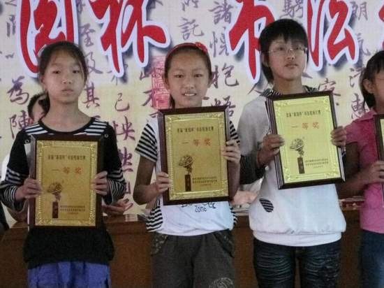11点整,颁奖典礼暨大赛闭幕仪式就在比赛现场举行。我校同学创下佳绩,参赛的五人全部得奖。其中,王淑同学夺得一等奖,汪路遥、周佳华、潘胜洋同学夺得二等奖,乐盈盈同学夺得三等奖。所获战绩在所有参赛学校中表现得较为突出,赛出了我们水平和风格,也赛出了我们马小南田书画社社员的士气!马小少年多才艺,中华文脉永相传!