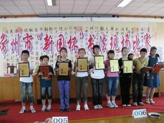5月10日上午,由常州市教育学会书法专业委员会主办,武进区前黄实验学校协办的首届“新园杯”小学生书法现场邀请大赛在前黄实验学校科学馆隆重开幕。常州大市三十多所特色学校的一百五十名左右学生(包括金坛溧阳部分学校)参加了本次比赛。本次大赛规格高,常州市书界最高领导和部分权威人士出席了本次开幕式,并担任此次大赛评委。