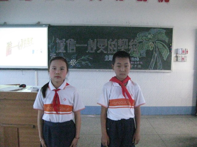 为弘扬中华民族诚实守信的传统美德,了解诚信做人的重要性,教育学生表里如一、真诚守信。 5 月 20 日下午 ,在中心校领导及各校大队辅导员的关心下,杨区小学四( 1 )中队开展了《诚信——心灵的契约》主题观摩活动。