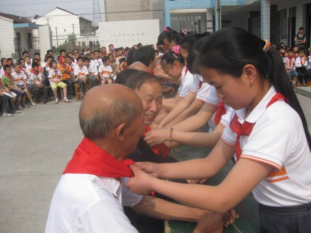 这些慈眉善目的老教师们,一走进杨区小学,脸上就笑开了花。孩子们亲热的问候,一条条鲜艳的红领巾,还有孩子们献上的精彩文娱演出,让老人们不知不觉回到了从前,回到了他们年轻的岁月,回到了他们勤奋工作的年代。