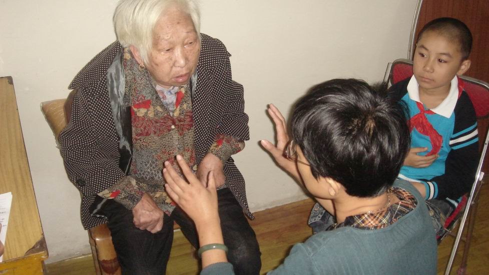 小记者们好奇地问着金奶奶各种问题。由于年事已高,听力下降的厉害,金奶奶只有在家人凑近耳朵大声说话的情况下才能听清楚。但是她依然十分健谈。当被小记者问及:“您为什么能当上全国劳动模范”这个问题的时候,金奶奶说:“他们说是我们车间做得好,其实那时候我也不知道什么叫全国劳动模范,只晓得认真工作,什么事情都不能马虎,也不能比别的车间差,就这么一年年干过来了。我当时真不知道当上劳模可以去北京。”