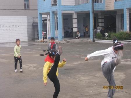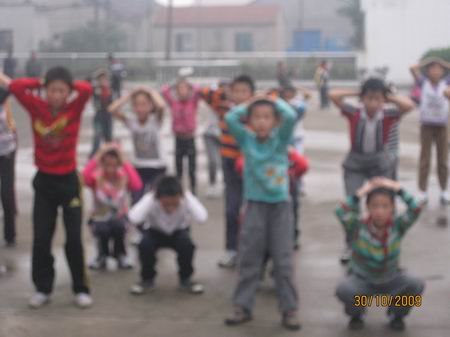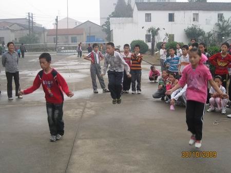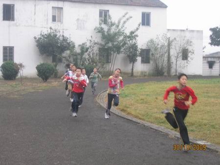 跑道上,只见田径运动员们在体育老师王芳的指挥下健步如飞,挥汗如雨;水泥大道上,跳绳运动员们在孙静芳教导的带领下刻苦练习,意志顽强;门楼下的平台上,踢毽运动员们在王华英校长的指点下巧练技术,日渐长进……