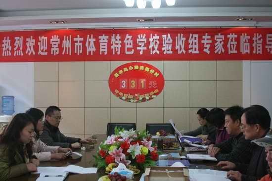 2009年12月18日下午,常州市教育局汤煜处长率常州市体育特色学校验收组专家,在区教育局基教科王为民科长陪同下亲临我校,对我校创建“常州市体育(乒乓)特色学校”进行了评估与验收。
