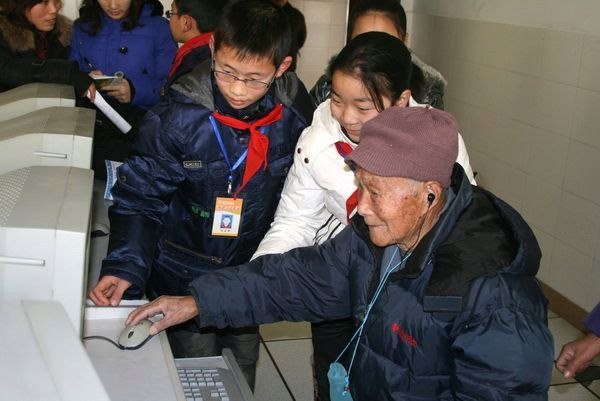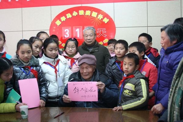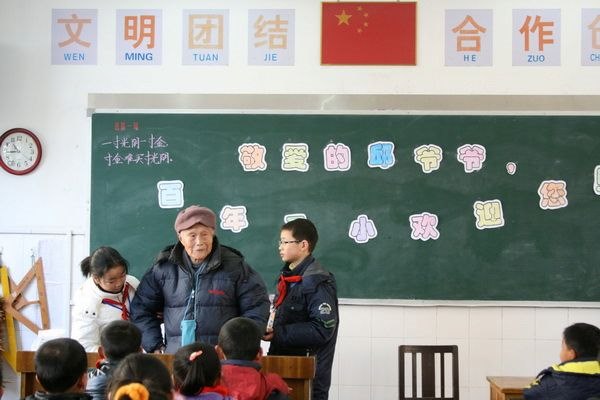 邱校长虽是百岁高龄,但是精神矍铄,思路清晰。一下汽车,看到要搀扶他的学生朝他跑去,就高兴地把孩子紧紧地拥入怀中,似乎是一个丢失了孩子的父亲终于找回了自己的孩子。回到马小,走上讲台,正是他这个人民老教师多年以来心中一个隐约的梦,今天,这个梦终于实现了。看着孩子们的笑脸,老校长不禁高兴地频频点头,激动地连话都讲不出来,只是用一个个的拥抱来阐释对学生的喜爱。