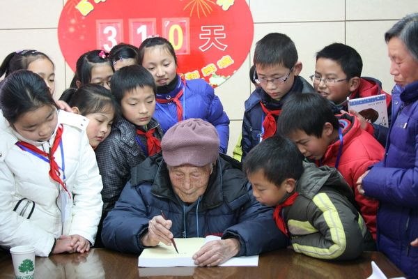 邱校长题词后把刊登他作品的一本书赠送给了学校。退休40年来,他从没有一天停止过学习与写作,书就是他人生的最爱。百岁之际,他正在积极撰写回忆录,收集他一生发表过的作品。老校长用他对知识的渴求与不竭的人生追求在行动上勉励着我们这些后辈,学习再学习,创新再创新,即使进入秋冬季节,也能为自己的人生铸就美丽!(马杭中心小学通讯组:梅英、徐伟杰、沈小伟)