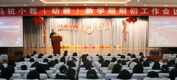 踏着春天的脚步,带着过年的喜庆,2月20日上午,马杭中心小学在中心校报告厅隆重举行马杭片小教幼教教师期初会议,全片180余位老师聚集一堂,共同迎接新学期的到来。会议分三个议程:缪宏亮校长做开学工作报告,“2010,幸福在路上”专场会和徐亚洁校长布置新学期工作。