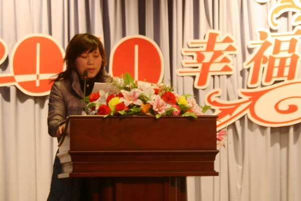 第二个环节是以“2010,幸福在路上”为主题的专场会,活动在音乐组老师的一曲《幸福马小》的深情演唱中拉开帷幕,七位老师围绕“幸福”,在多媒体画面的衬托下,在悠扬的音乐的渲染中,以演讲的形式讲述了马小和谐氛围中工作的幸福,实施绩效工资的幸福,工作中成就自我的幸福,经历马小巨变的幸福,经历百年校庆的幸福和在读书中感悟的幸福,周小萍校长和金全发校长还宣布了马杭片优秀通讯稿和沙龙名帖的表彰决定,最后活动在幼儿园老师婀娜的舞姿和亮丽的嗓音演绎的一首《幸福万年长》中徐徐落下帷幕。