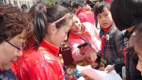 以班级为单位的摊位上,不仅有同学们为奉献爱心而捐赠的精美物品,更有同学们的精心策划设计:别具匠心的广告语、新颖别致海报宣传画,着实让学生“潇洒”了一回,活动不仅让学生在商品买卖中体会了经济交易的规则,还初步领略了经济生活的魅力。同学们被琳琅满目的商品吸引了,纷纷地挑选着自己心仪的物品,虽然,这些东西不是很新,但他们都觉得这更有意义,这是全校师生献出的一片爱心。