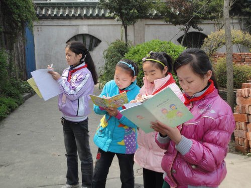 ——马小小记者和南田少儿书画社部分成员观藏龙馆