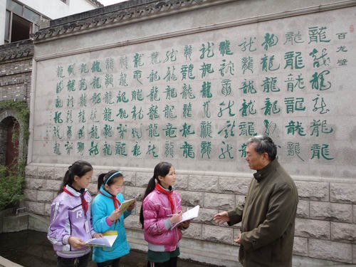百家挥神笔大书“龙”字