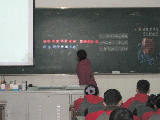 首先大家一起观摩了白舜华老师执教的研讨课:一年级的《求两个数相差多少的实际问题》。白老师作为马杭中心小学数学能力促进小组的成员,她以扎实的基本功,丰厚的教学功底,向我们展示了一节非常精彩的数学课。她的课清新自然,每一个习题都独具匠心,具有很强的针对性和一定的层次性。在例题的教学中,她通过让学生摆一摆、想一想、算一算等各种活动,借助直观的教具和学具,帮助学生在掌握解决两个数相差多少的实际问题的方法的同时很好地理解了算理。