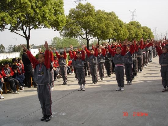 2010430下午,城南小学水泥广场上,一个个整齐的方阵形成了一道美丽的风景,一声声响亮的口号响彻云霄,“迎五一”广播操比赛在这里隆重举行。