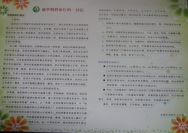 这封带着淡淡绿色,透着浓浓典雅的信,孕育着满满的希望。在这封信里,有着马小对上一学年丰硕成果的回顾,渗透着对支持与配合学校工作的家长们的深深感谢;同时也响亮地提出了“外塑形象,内练品行,关注细节,汲养根基”的口号,对家长们从孩子学习、常规到安全都提出了明确的要求。这封凝聚着强大教育合力的信,架起了家校携手共育的桥梁。一份书信,传递的是浓郁的关爱,寄予的是殷切的希望。