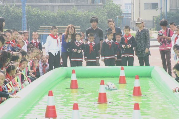 本次活动主要分三个方面,分别是水上航模操作比赛、观看科普电影和参观科普教育图片展。上午,以年级为单位,在伫歌广场进行了航模操作比赛。各班学生在工作人员的统一指挥下,参与热情非常高,广场上加油声不绝于耳。赛艇模型在各位小选手的操控下,在各个障碍物之间灵活穿梭,最后,各年级都评出了优秀奖。中午,师生集中在各自教室,通过学校最新创建的班班通,在教室观看科普电影,本次科普电影主要介绍了生活中一些常见的安全常识以及科学的应急逃生技巧。随后,各班还参观了科普教育图片展。
