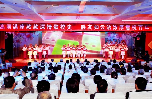 高朋满座款款深情歌校史,胜友如云浓浓厚意祝百年