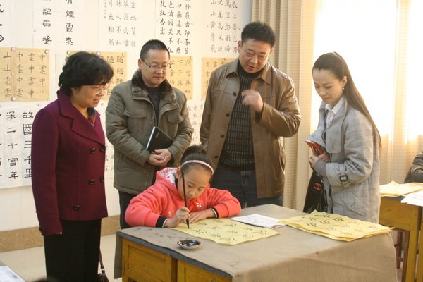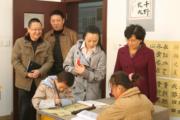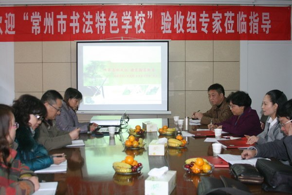 12月8日,由常州市教育局体卫艺处汤煜处长、常州市教育局基教处杨处长、常州市书法家协会张军佳秘书长、武进区教育局基教科王为民科长、前黄中心小学周翰凯校长组成的5人专家小组来到马小,对我校争创常州市“书法特色学校”进行评估验收。