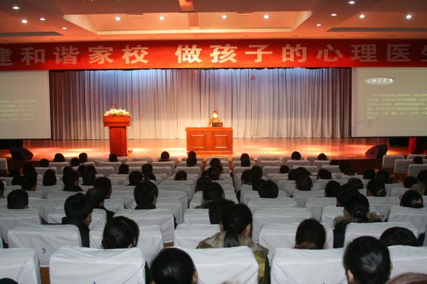 接着认真聆听了国家二级心理咨询师,常州市清潭实验小学中学高级教师胡丹凤老师作的关于《做好孩子的心理医生》的专题讲座。胡老师的讲座旁征博引,娓娓动听。她从童心传真、分析与思考、策略与方法三方面阐述了“焦虑、抑郁、强迫、厌学、偷窃、嫉妒、自卑、脆弱”八大青春期少年儿童常见的心理问题。胡老师的精彩讲座深深地打动了每一位家长的心。