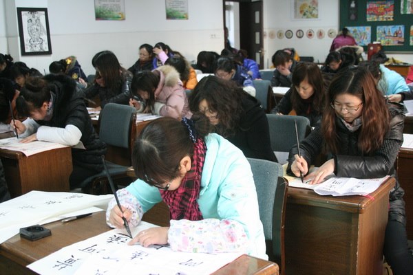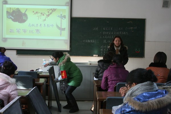 马杭中心小学一直以来都很重视对青年教师的培养,注重他们自身素质的不断提升。学校结合区教育局的“师能大练兵”、“三讲三比”活动和争创“常州市书法特色学校”工作,积极组织青年教师进行基本功培训和竞赛。学校采取专家集中辅导与自培自练相结合的办法,特聘江苏省书法家协会会员、常州市教师书法培训特聘讲师李国强老师每周一下午来校指导教师写字。同时专门制定了《马杭中心小学关于书法教学考核实施办法(试行稿)》。通过这些扎扎实实的举措,学校顺利通过了“常州市书法特色学校”验收并取得了专家们的一致好评,特别是在教师培训方面得到了专家的盛赞。学校的三笔字考核确确实实成为了提高马小教师基本功的一道校园文化大餐!