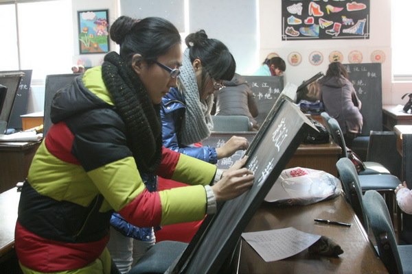 “三笔字”是教师传授知识信息、传播审美观念、传承民族文化、塑造自身形象所不可或缺的重要载体,是教师必备的职业技能。1月10日,正是寒风凛冽,冬寒料峭之际,马杭中心小学书法室暖意浓浓,35周岁以下的青年教师积极参加了由校长室和教导处联合组织的“三笔字”考核。