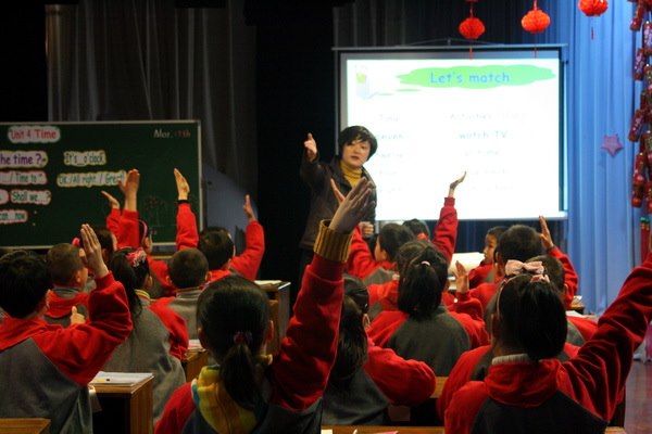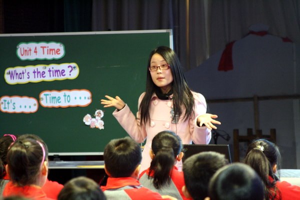 活动分三部分,首先由马杭小学张荷香老师和魏菲老师执教3B Unit4 Time的一、二课时。两节课分别以动画人物“灰太狼(big big wolf)”和“共度好时光(have a good time)”为主线,精心设计教学环节,目标的达成均能实现有形无痕,两位老师基本功娴熟扎实,在课堂上自由挥洒,质朴中不乏机智,自由中不失严谨,课堂教学融情趣和理趣于一炉,好似春夜之雨润物无声,给听课者带来了很多的收获。学生们在教师的循循善诱下,将所学语言发挥得淋漓尽致。