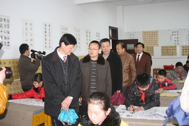 胡厅长一行一下车,就在缪宏亮校长的带领下踏上南田楼5楼,参观学校特色教育。他们先来到南田少儿书画社,饶有兴致地观看小社员们的书法训练,对小社员娴熟的书法技艺大为赞叹。接着,他们来到了南田师生作品陈列室参观,更被一幅幅蕴含着深厚文化底蕴的书画作品所惊叹。随后,胡厅长一行参观了“南田遗韵”纪念馆。在纪念馆,他们听着小讲解员落落大方、抑扬顿挫的讲解,不时驻足停留,啧啧赞叹。