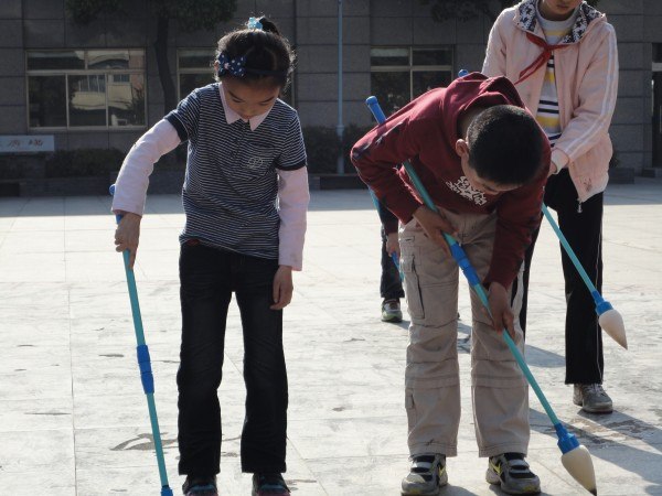 下午两节课后马小校园多彩多姿的兴趣活动就展开了,您见过在地面上泼墨挥毫的人们吗?昨天,南田少儿书画社的小社员们真切地体会了一次大地当纸泼豪情的感觉。